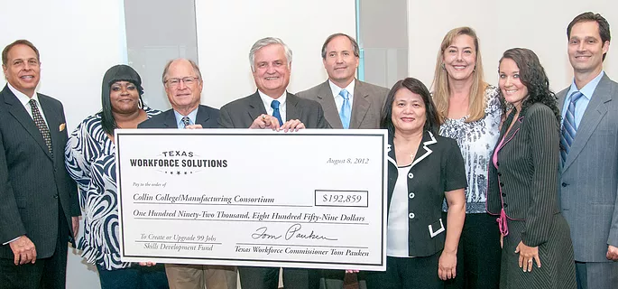 "You can't have a strong economy without a strong manufacturing base," Tom Pauken, TWC commissioner, said before presenting the grant check to Collin College officials. "And, while Texas is the number one place in America to do business, our manufacturing sector over the last decade has really...hollowed out."